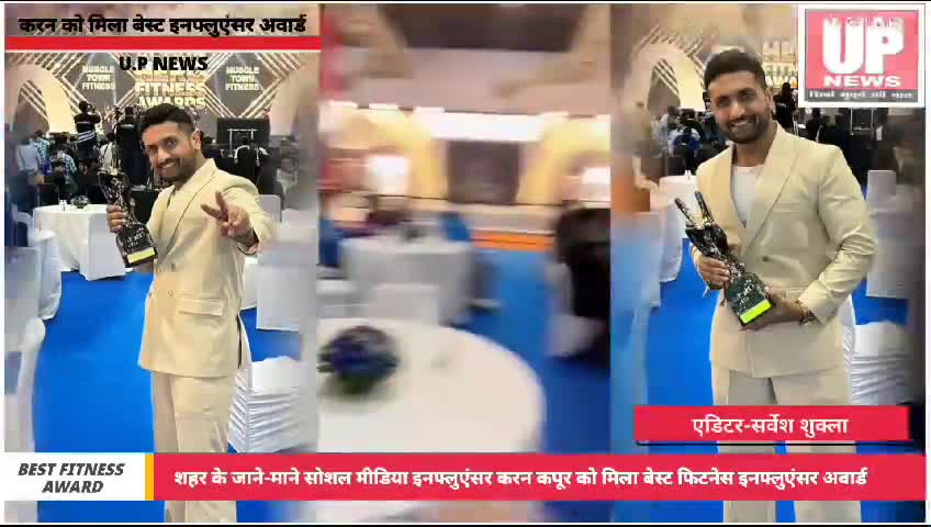 कानपुर के करन कपूर को मिला बेस्ट फिटनेस इनफ्लुएंसर अवार्ड या अवार्ड बॉलीवुड एक्टर विद्युत जामवाल ने दिया