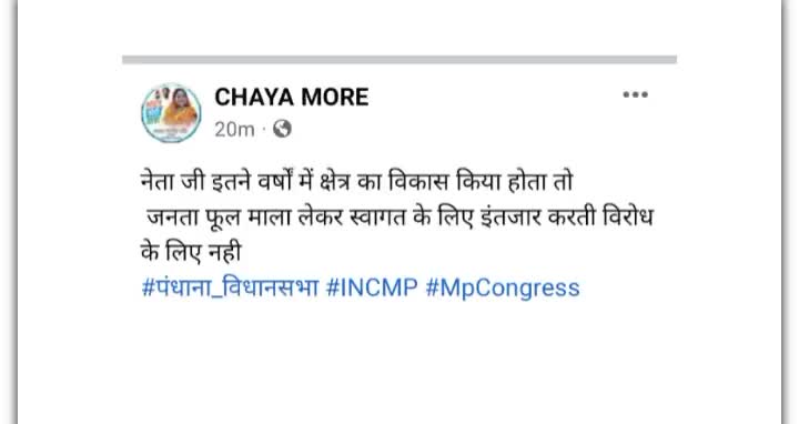 विकास यात्रा को लेकर हुए विरोध पर कांग्रेस नेत्री छाया मोरे की प्रक्रिया #पंधाना #पंधाना