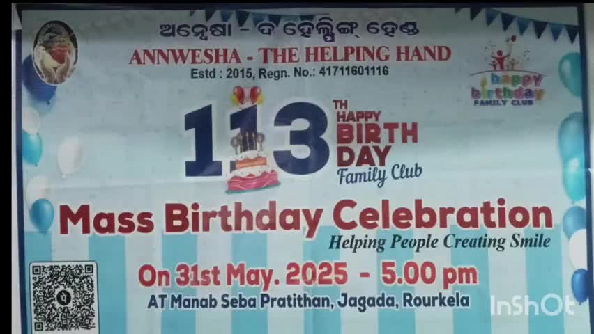 ମଇ ୩୧ ତାରିଖ ଅପରାହ୍ନ ୫ଟାରୁ ସନ୍ଧ୍ୟା ୭ଟା ପର୍ଯ୍ୟନ୍ତ ରାଉରକେଲାର ଅଗ୍ରଣୀ ସାମାଜିକ ସାଂସ୍କୃତିକ ଅନୁଷ୍ଠାନ "ଅନ୍ଵେଷା" ଦି ହେଲପିଙ୍ଗ ହାଣ୍ଡ ତରଫରୁ ୧୧୩ତମ ସାମୁହିକ ଜନ୍ମଉତ୍ସବ ଜଗଦା ସ୍ଥିତ" ମାନବ ସେବା ପ୍ରତିଷ୍ଠାନ' ଠାରେ ପାଳିତ ହୋଇଯାଇଛି, ଅନୁଷ୍ଠାନର ପ୍ରତିଷ୍ଠାତା ରାଜେନ୍ଦ୍ର ପ୍ରସାଦ ପଣ୍ଡା ଓ ଉପ ସଭାପତି ରଶ୍ମିତା ପଣ୍ଡାଙ୍କ ଆବାହକତ୍ୱରେ ଆୟୋଜିତ କାର୍ଯ୍ୟକ୍ରମରେ "ମାନବ ସେବା ପ୍ରତିଷ୍ଠାନ"ର ଅନ୍ତେବାସିନୀମାନେ ହେମନ୍ତ ତାଣ୍ଡିଆଙ୍କ ଆହ୍ୱାନରେ ଯୋଗଦେଇଥିଲେ, ମଇ ମାସରେ ଜନ୍ମଗ୍ରହଣ କରିଥିବା ପିଲାମାନଙ୍କ ସହ "ଅନ୍ଵେଷା" ପାରିବାରର ସଦସ୍ୟଗଣଙ୍କ ଜନ୍ମଦିନ ଉପଲକ୍ଷେ ke