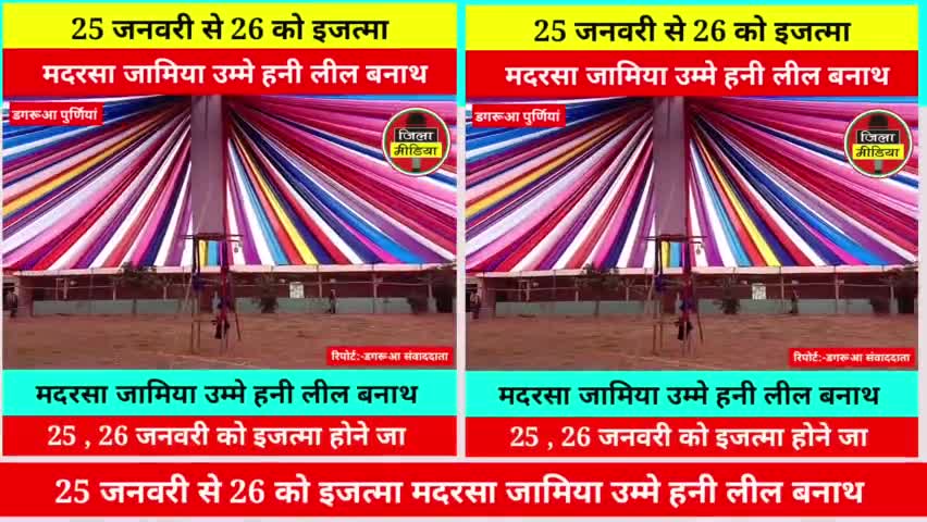 25 जनवरी से 26 को इजत्मा मदरसा जामिया उम्मे हनी लील बनाथ बंदरक में होने जा रहा है।