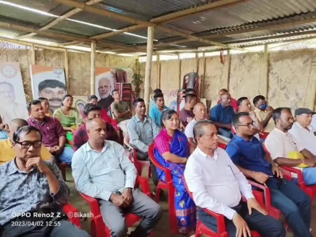 বাগানপাৰা ভাগ: ভাৰতীয় জনতা পাৰ্টিৰ মুছলপুৰৰ জিলা অফিচত ভাৰতীয় জনতা পাৰ্টিৰ সাধাৰণ বৈঠকত উপস্থিত জিলা সভাপতি শৰৎ শৰ্মা