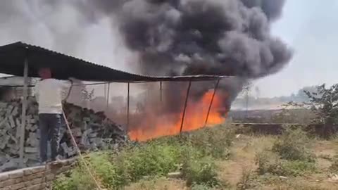 खासभरा मोड़ के पास इटखुदा में संदिग्ध परिस्थितियों में खेत में लगी आग चपेट में इंटरलॉकिंग ईंट कारखाना का जलकर खाक हुआ।
