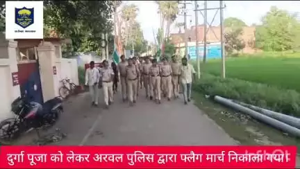 दुर्गा पूजा को लेकर अरवल पुलिस द्वारा फ्लैग मार्च निकाला गया।