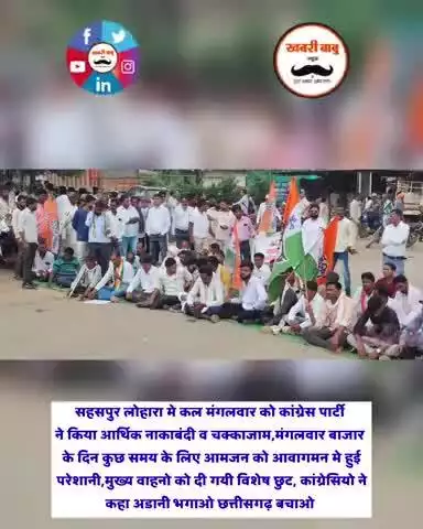 सहसपुर लोहारा मे कल मंगलवार को कांग्रेस पार्टी ने किया आर्थिक नाकाबंदी व चक्काजाम