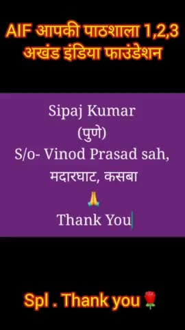 AIF आपकी पाठशाला के बच्चों को इन सब के द्वारा दीपावली की मिठाई दी गई।