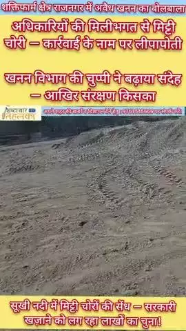 शक्तिफार्म राज नगर में सूखी नदी से मिट्टी चोर लाखों की मिट्टी चोरी कर रहें, खनन विभाग की चुप्पी ने बढ़ाया संदेह