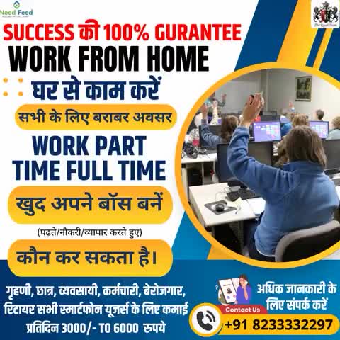 WORK FORM HOME 💰DAILY INCOME 💵OPPORTUNITY 3000/- to 6000/- Whatsapp 8233332297
