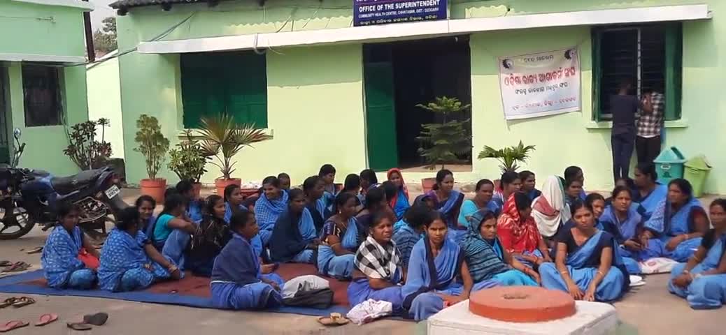 ରିଆମାଳ: ଛତାବର ଗୋଷ୍ଠୀ ସ୍ବାସ୍ଥ୍ୟକେନ୍ଦ୍ରରେ ୭ ଦଫା ଦାବିରେ ଅନିର୍ଦ୍ଦିଷ୍ଟ କାଳ ପର୍ଯ୍ୟନ୍ତ ଆଶାକର୍ମୀଙ୍କ ଧାରଣା