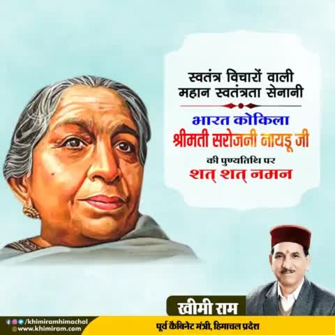 भारत कोकिला, महान देशभक्त, स्वतंत्रता आन्दोलन में अपना भरपूर योगदान देने वाली श्रीमती सरोजनी नायडू जी की पुण्यतिथि पर शत-शत नमन।। #sarojininaidu