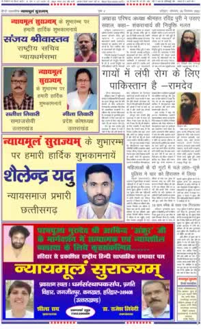 न्यायमूलं सुराज्यम् राष्ट्रीय हिंदी साप्ताहिक समाचार पत्र हरिद्वार से