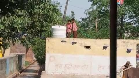 अध्यापक छोटे-छोटे छात्रों से शौचालय की छत पर चढ़वाकर टंकी में पानी भरवाते हैं अगर पैर फिसल जाए तो कौन बनेगा जिम्मेदार।