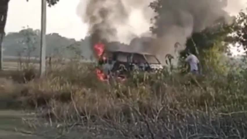 घाटमपुर: कुड़नी स्थित पेट्रोल पंप के पास वैन में अचानक लगी आग, वैन सवारों ने कूदकर बचाई अपनी जान