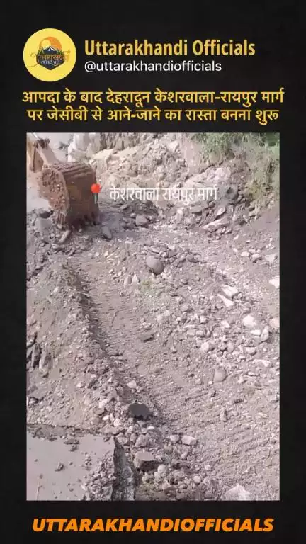 आपदा के बाद देहरादून केशरवाला–रायपुर मार्ग पर जेसीबी से आने-जाने का रास्ता बनना शुरू