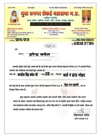 अखिल भारतीय धनगर शेफर्ड पाल महासभा गोहद में हरेन्द्र बघेल जी को गोहद नगर महामंत्री बनाए जाने पर हार्दिक बधाई शुभकामनाये *मोहन भैया टीम गोहद*