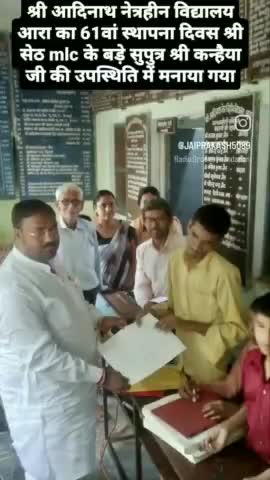 श्री आदिनाथ नेत्रहीन विद्यालय आरा की 61वा स्थापना दिवस श्री राधाचरण सेठ MLc के पुत्र कन्हैया जी के उपस्थिति में मनाया गया।