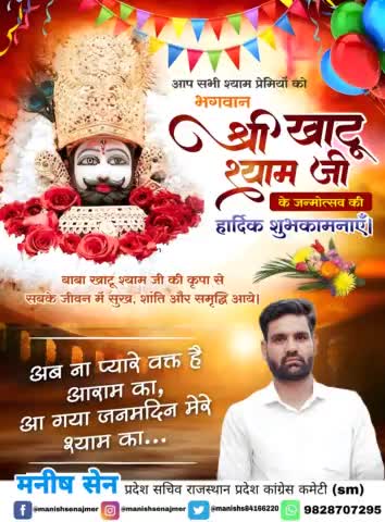 हारे का सहारा, बाबा खाटू श्याम हमारा" 💐खाटू नरेश श्री खाटूश्याम जी के जन्मोत्सव की सभी को हार्दिक शुभकामनाएं।💐 श्याम बाबा की कृपा सभी पर बनी रहे।