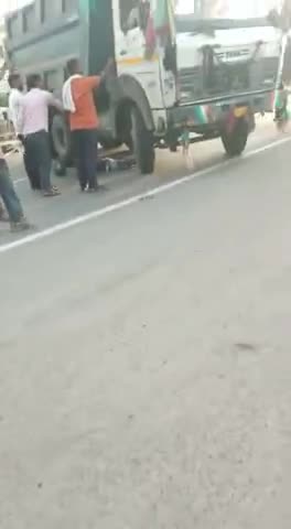 बिलारा: ट्रक और मोटरसाईकल के बीच हुई भिड़ंत, जिसमे मोटरसाईकल पर सवार युवक हुए घायल। #viralvideo #rajsthan