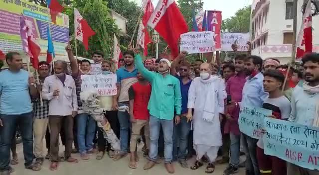 विभिन्न मांगों को लेकर आज एआईएसएफ कानून मंत्री रविशंकर प्रसाद सिंह का पुतला फूंका