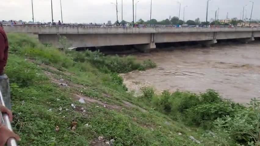 #अरपा नदी अपने रौद्र रूप में पहली बार #लोगों को अरपा नदी का ये रूप देखकर विश्वास नही हो पा रहा। #बाढ़ देखने लोगों की भीड़