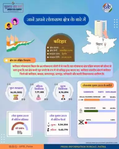 जानें #बिहार के 40 लोकसभा निर्वाचन क्षेत्रों में से एक #कटिहार संसदीय क्षेत्र के बारे में मतदान तिथि- 26.04.2024