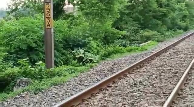 डीडीयू गया रेलखंड के न्यू कुदरा रेलवे स्टेशन पर पूर्वा एक्सप्रेस से कटा रेलवे का कार्य कर रहा कर्मी।