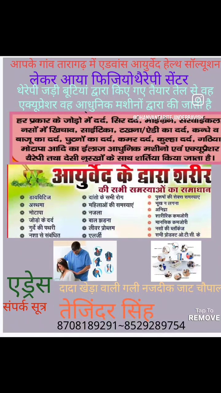 फिजियोथेरेपी के लिए संपर्क करें और आयुर्वैदिक मेडिसिन के लिए 8788189291