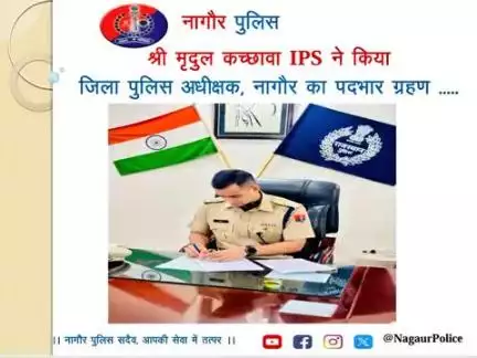 नव पदस्थापित पुलिस अधीक्षक श्री मृदुल कच्छावा IPS ने आज जिला पुलिस अधीक्षक, #नागौर के रूप में पदभार ग्रहण किया।