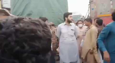 Pakistan Army being pushed away by Islamist protesters in Pakistan.