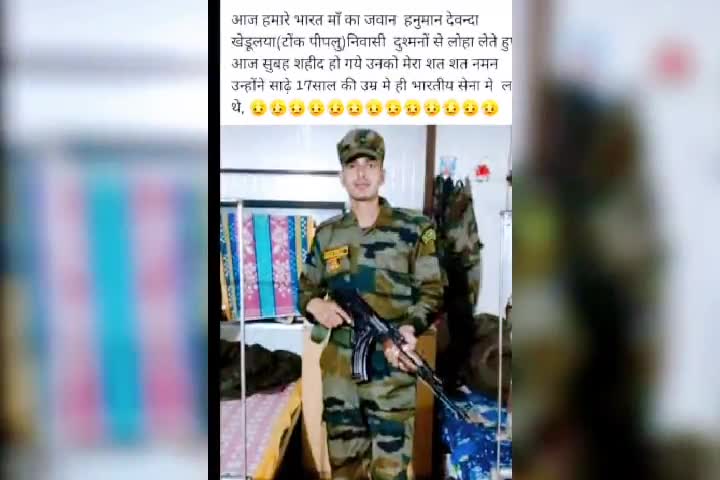 पीपलू:-दुश्मनों से लोहा लेते समय के खेडूल्या निवासी हनुमान देवंदा हुए शहीद #सैनिक_शहीद