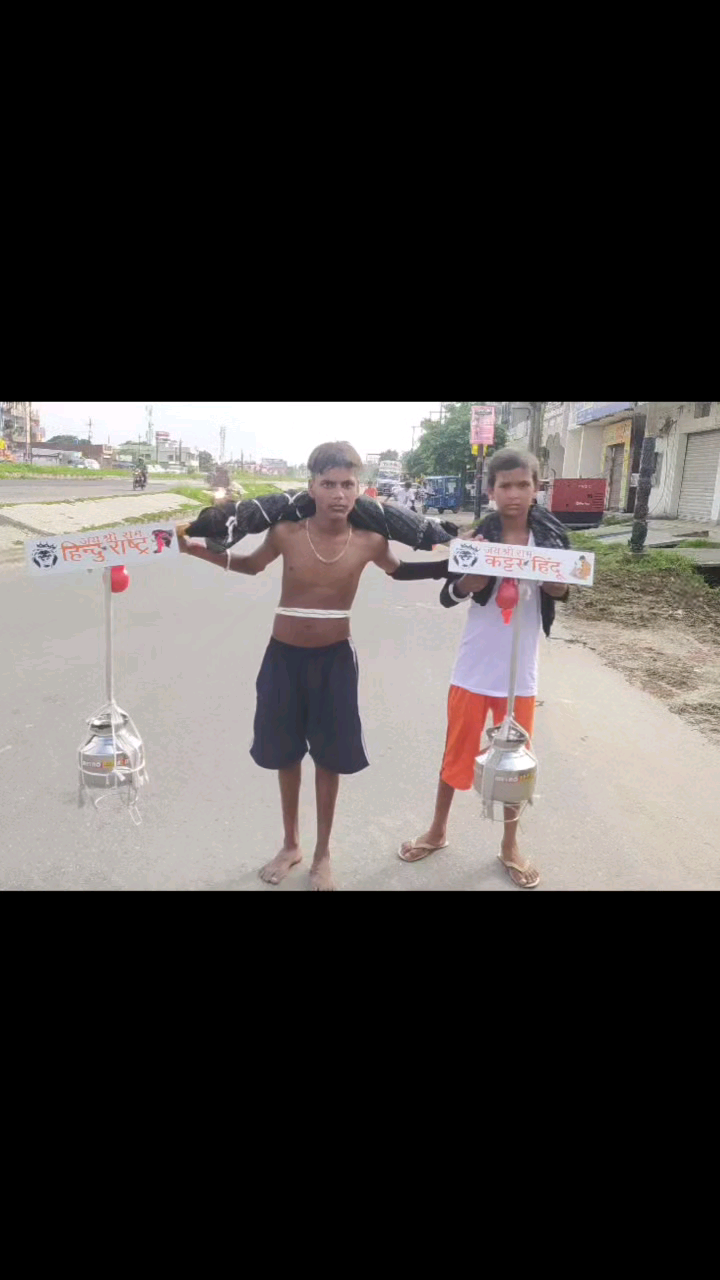 बृजघाट से जल भर के हिंदू राष्ट्र के नाम की कावड़ को लेकर चला बच्चा भोला गजरौला में पहुंचते हुए स्वागत