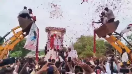 मृत व जलसंधारण मंत्री संजय राठोड हे अकोला दौऱ्यावर आज होते ते अकोल्याच्या बार्शीटाकळी तालुक्यातील दगड पारवा येथे बंजारा समाज बांधवांच्या संवाद मेळाव्यासाठी आले असता त्यांचं भव्य स्वागत करण्यात आलं दरम्यान हे स्वागत जेसीपी मधून पुष्प उधळून आणि भव्य रथ काढून करण्यात आलं यावेळी मोठ्या संख्येने आपल्या पारंपरिक वेशभूषा परिधान करून बंजारा बांधवांनी संजय राठोड यांचं स्वागत केलं होतं अशी माहिती माध्यमाला मिळाली