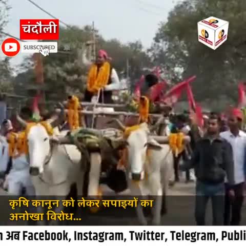 चंदौली: #chandauli - कृषि कानून को लेकर सपा कार्यकर्ताओं का अनोखा विरोध, सैकड़ों सपाई बैलगाड़ी,पैदल जुलूस निकाल किया विरोध