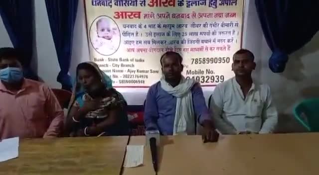 भारतीय एकता शेर सेना ' सामाजिक संस्था ' धनबाद वासियों से अपील करती है । धनबाद के 4 माह के मासूम आरव लीवर की गंभीर बीमारी