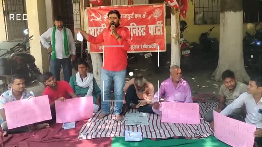 भारतीय कम्युनिस्ट पार्टी के राजव्यापी कार्यक्रम के तहत महुआ प्रखंड कार्यालय के समक्ष आयोजित एक दिवसीय धरना को संबोधित किए aisf के जिला अध्यक्ष प्रकाश प्रियदर्शी