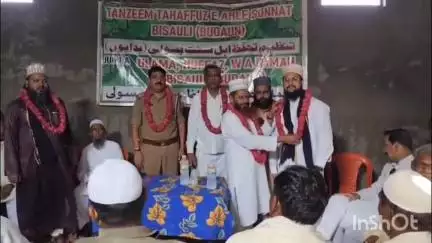 बिसौली नगर में मदरसा फैजान ए रजाए मुस्तफा में सामाजिक सदभाव को लेकर शुक्रवार को 5 बजे करीब आयोजित कार्यक्रम में नगर पालिका अध्यक्ष अबरार अहमद एवं पुलिस इंस्पेक्टर हरेंद्र सिंह का फूलमालाएं पहनाकर स्वागत किया गया। नगर में सामाजिक सदभाव बनाए रखने के लिए कोतवाल ने मुस्लिम धर्मगुरुओं एवं प्रबुद्धजनों के साथ बैठक की।