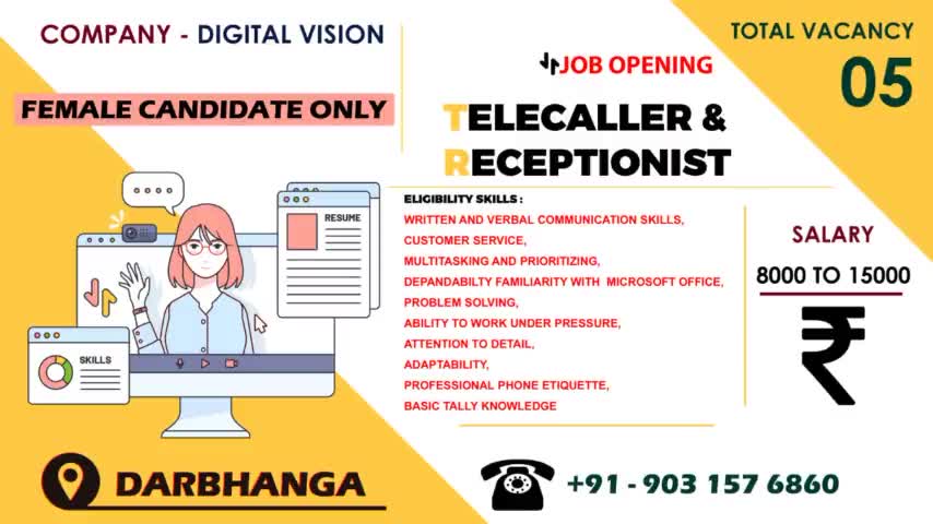 Job Openings:- Female Candidate Only Area :- Darbhanga
