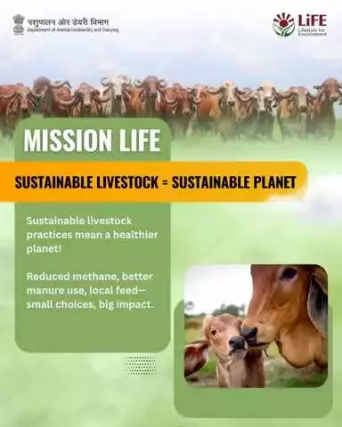 Sustainable Livestock = Sustainable PlanetSustainable livestock practices mean a healthier planet! Reduced methane, better manure use, local feed—small choices, big impact.#MissionLiFE