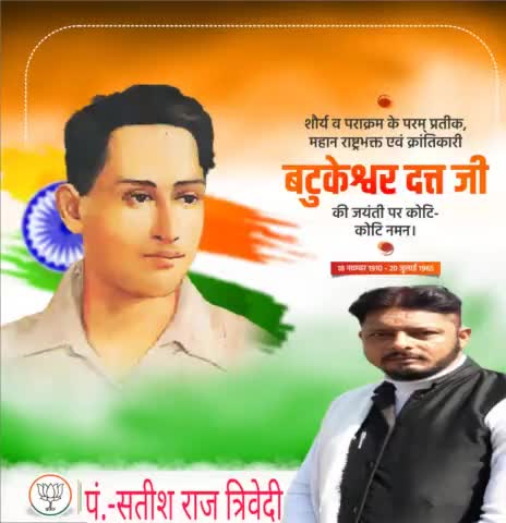 माँ भारती के अमर सपूत, प्रखर राष्ट्रभक्त, भारतीय स्वाधीनता संग्राम में भगत सिंह के साथ केंद्रीय विधान सभा में बम विस्फोट कर बर्बर अंग्रेजी हुकूमत को दहलाने वाले महान क्रांतिकारी #बटुकेश्वर_दत्त जी को उनकी जयंती पर कोटि कोटि नमन।