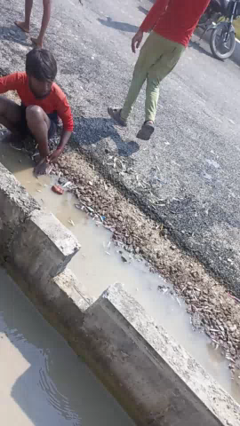 फतेहपुर के कानपुर नेशनल हाइवे मदरियापुर गाँव के पास अचानक हाइवे के बगल नाली मे मछलियाँ आ जाने से पकड़ने वालों की उमड़ी
