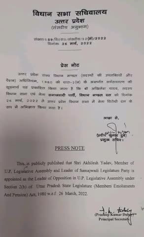 #लखनऊ:सपा विधायक दल की बैठक में @अखिलेश यादव जी नेता प्रतिपक्ष विधान मंडल चुने गए।