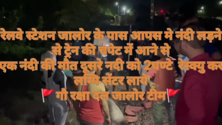 जालौर: रेलवे स्टेशन जालोर के पास आपस मे नंदी लड़ने से ट्रेन की चपेट में आने से एक नंदी की मौत दूसरे नदी को 2घण्टे रेस्क्यु कर ल