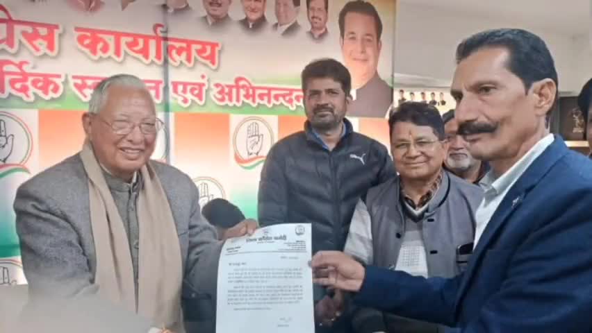 वरिष्ठ कांग्रेसी नेता एन यू खान को जिला सचिव का नियुक्त पत्र देते हुए पूर्व विधानसभा अध्यक्ष गोविंद सिंह कुंजवाल जी
