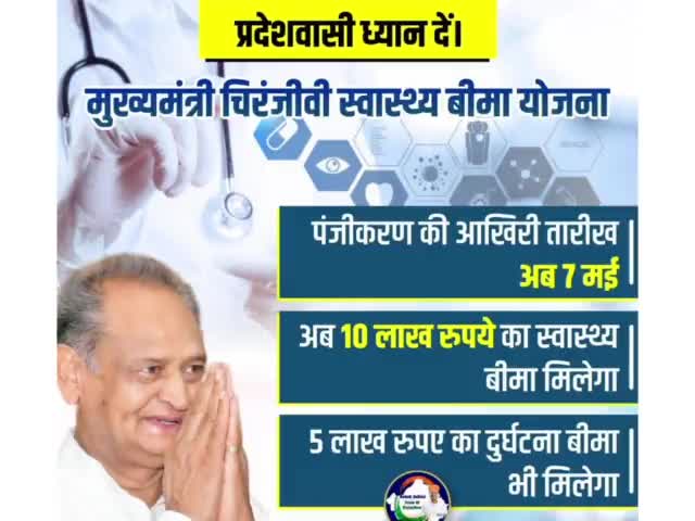 मुख्यमंत्री चिरंजीवी स्वास्थ्य बीमा योजना पंजीकरण की आखिरी तारीख अब 7 मई #Rajsthan