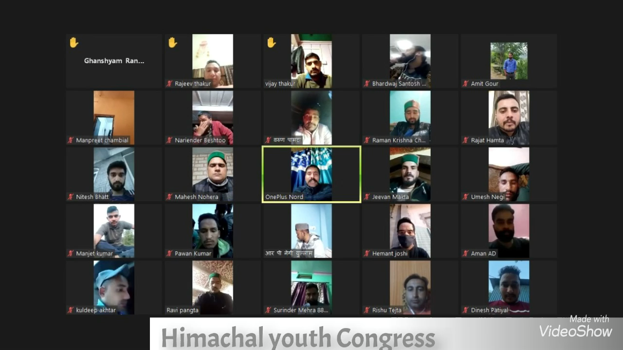 आज सोशल मीडिया हिमाचल प्रदेश युवा कांग्रेस की प्रदेश, जिला ,ब्लॉक स्तर के सभी पदाधिकारियों की सामुहिक बैठक zoom app के माध्यम से हुई।@nigambhandari