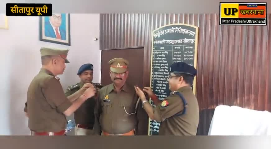 महमूदाबाद: सीतापुर : महमूदाबाद कोतवाली में तैनात दीवान की हुई पदोन्नति कंधों पर स्टार लगाकर दीगई बधाई ।