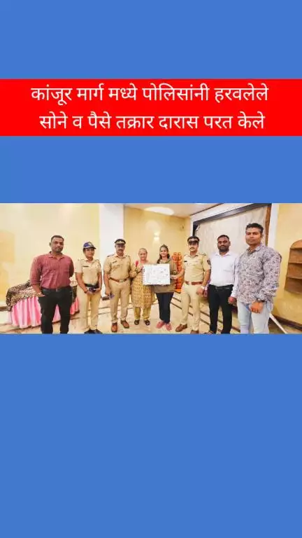 भांडुप पोलीस ठाणे हद्दीतील जे .एन. एम हॉलमध्ये पोलिस उप आयुक्त परिमंडळ ७ यांच्या हस्ते कांजूरमार्ग पोलीस ठाणेस दाखल गुन्ह्यातील फिर्यादी यांना हरवलेले १७ ग्रॅम सोने तसेच एकूण रोख रक्कम ५,३७,०००/- रुपये आज सोमवार दिनांक २९ सप्टेंबर रोजी दुपारी १२ वाजता परत करण्यात आले आहे