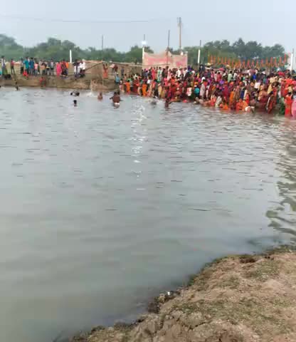 कुटुंबा: कुटुम्बा में श्रद्धालु छठ पर्व मानते हुए