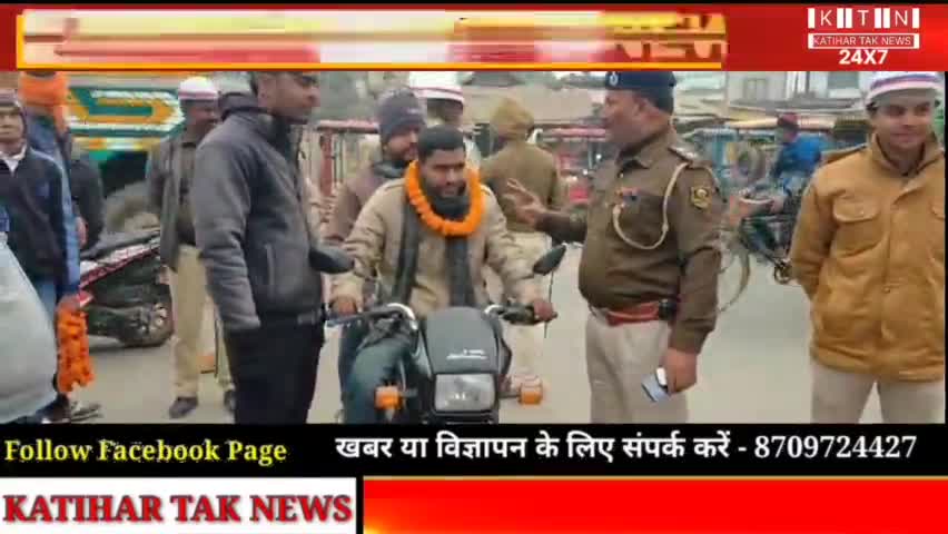 कटिहार: Traffic Police का अनोखा पहल , बिना हेलमेट वाहन चलाने वालों को माला पहनाकर की गई अपील।