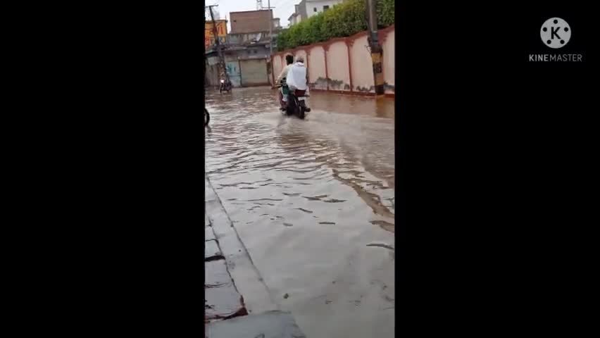 रावतसर : कस्बे में सामान्य-सी बरसात के बाद बनी जलभराव की स्थिति। दुकानदारों व राहगीरों को उठानी पड़ रही है मुश्किल। 🌧️