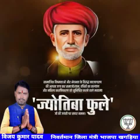 सामाजिक क्रांति के अग्रदूत, नारी शिक्षा और समानता के अधिकार के लिए आजीवन संघर्ष करने वाले "महात्मा ज्योतिबा फुले" जी की जयंती पर उन्हें शत् शत् नमन।